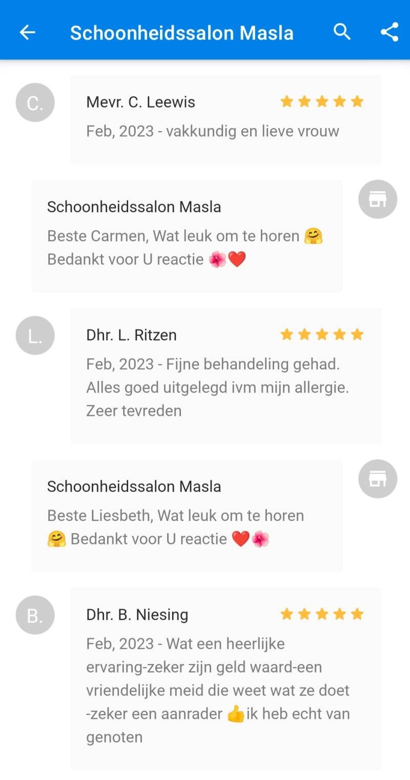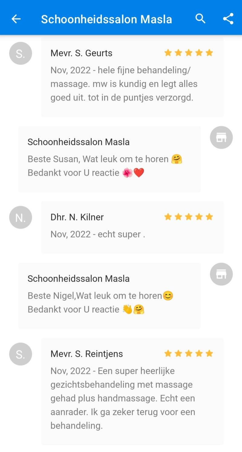 Warm ontvangst,kundige vakvrouw!genoten van de heerlijke verzorging en massage met fijne etherische oliën.